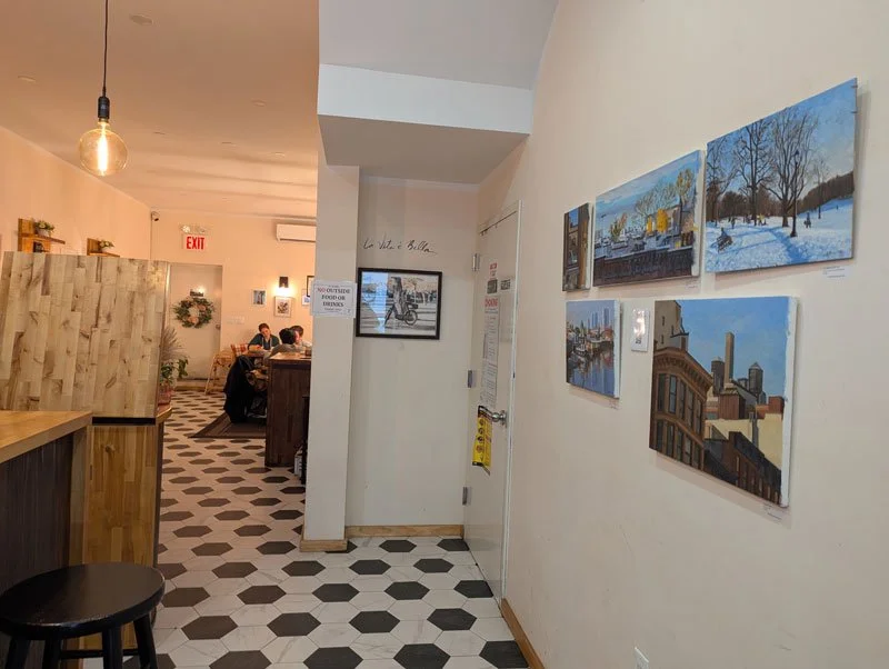 Stop by Volare on 5th Avenue in Park Slope, Brooklyn, for a friendly welcome and art displays (not only mine!)